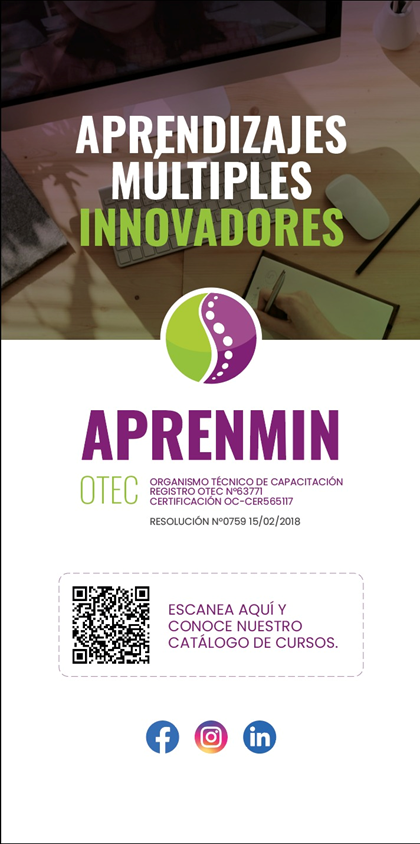 Aprendizajes Múltiples Innovadores, APRENMIN, es un Organismo Técnico de Capacitación, que tiene como objetivo el desarrollo de competencias laborales acordes a las necesidades de la industria actual y futura, impartiendo cursos que contribuyen a complementar la formación técnica y profesional de personas con aspiraciones de perfeccionamiento constante.